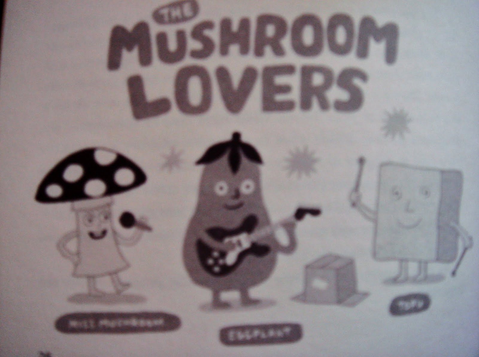 1) The Mushroom Lovers: How its band members, Miss Mushroom, Eggplant and Tofu (love them! hehe) face problems in increasing their concert attendance;
