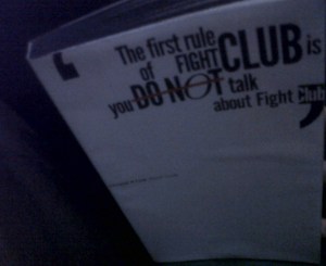 I’ve seen Fight Club. I loved it. I’ve also just read the book. Loved it too. Even dreamt about being in Fight Club with Pitt and Norton last night! Haha yes, for real, ok 😛 So. Everyone knows about fight club and the story.
