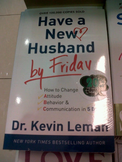 Synopsis: (A gist from amazon.com) Have a new husband by Friday? Is that even possible? Dr. Kevin Leman says it is. Here’s how Leman suggests she handle it day to day: Monday: Secrets Revealed: Cracking the Male Code